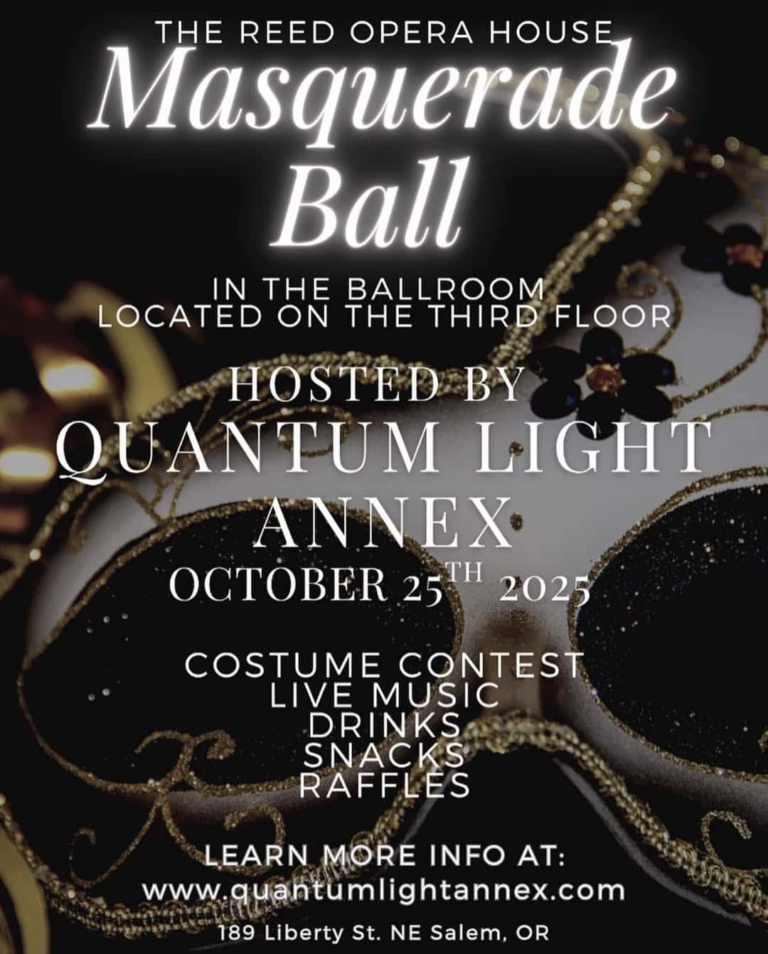 Sponsored by Quantum Light Annex (quantumlightannex.com). Join us on October 25, 2025 at 6:00 PM (Pacific Time) for a night of mystery and elegance. Put on your favorite mask and dance the night away in this enchanting venue. Don’t miss out on this unforgettable evening filled with music, dancing, and delightful surprises. Let’s make this a night to remember!